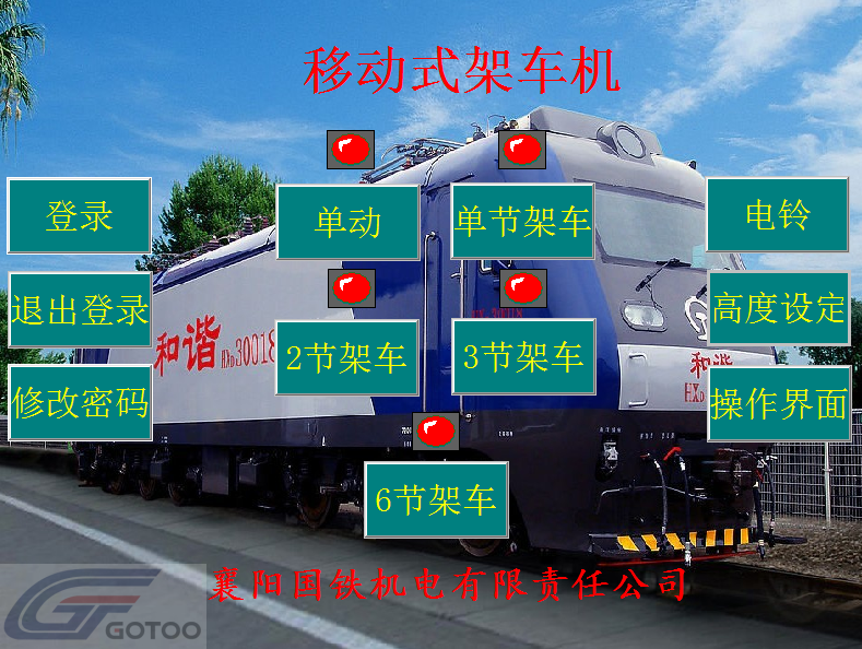 The equipment for the operation of a vehicle frame is called a group of carriage units. The full set of equipment consists of 6 sets of mobile rack cranes and 2 consoles, and the console can realize the function of 3 vehicles with synchronous racks.