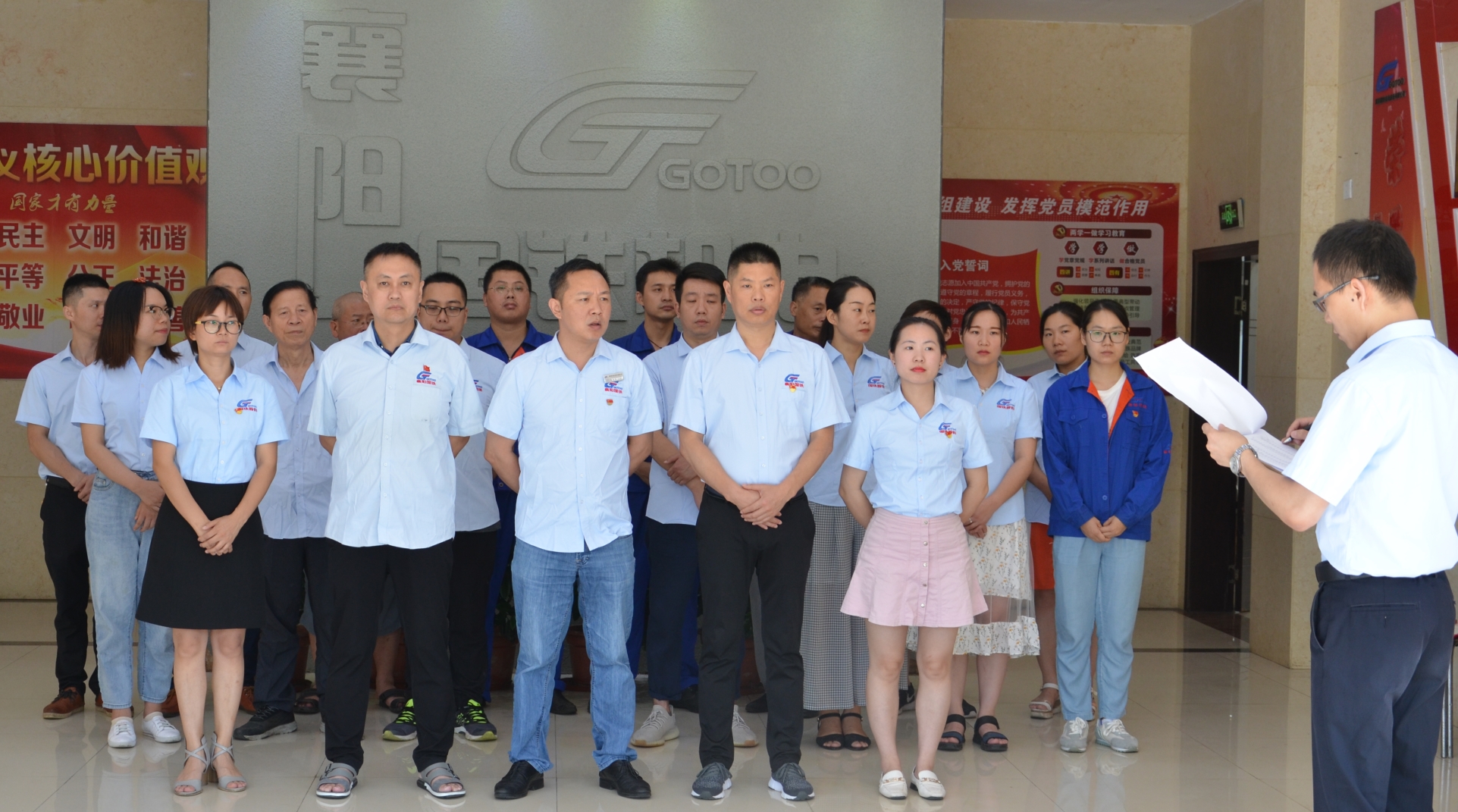 “我志愿加入中國(guó)共產(chǎn)黨,擁護(hù)黨的綱領(lǐng),遵守黨的章程,履行黨員義務(wù),執(zhí)行黨的決定,嚴(yán)守黨的紀(jì)律,保守黨的秘密,對(duì)黨忠誠(chéng),積極工作,為共產(chǎn)主義奮斗終身,隨時(shí)準(zhǔn)備為黨和人民犧牲一切,永不叛黨?!白V袊?guó)共產(chǎn)黨建黨98周年節(jié)日快樂。在黨支部書記的領(lǐng)誓下,大家高舉右手莊嚴(yán)宣誓,重溫入黨宣誓的莊嚴(yán)承諾和堅(jiān)定決心。