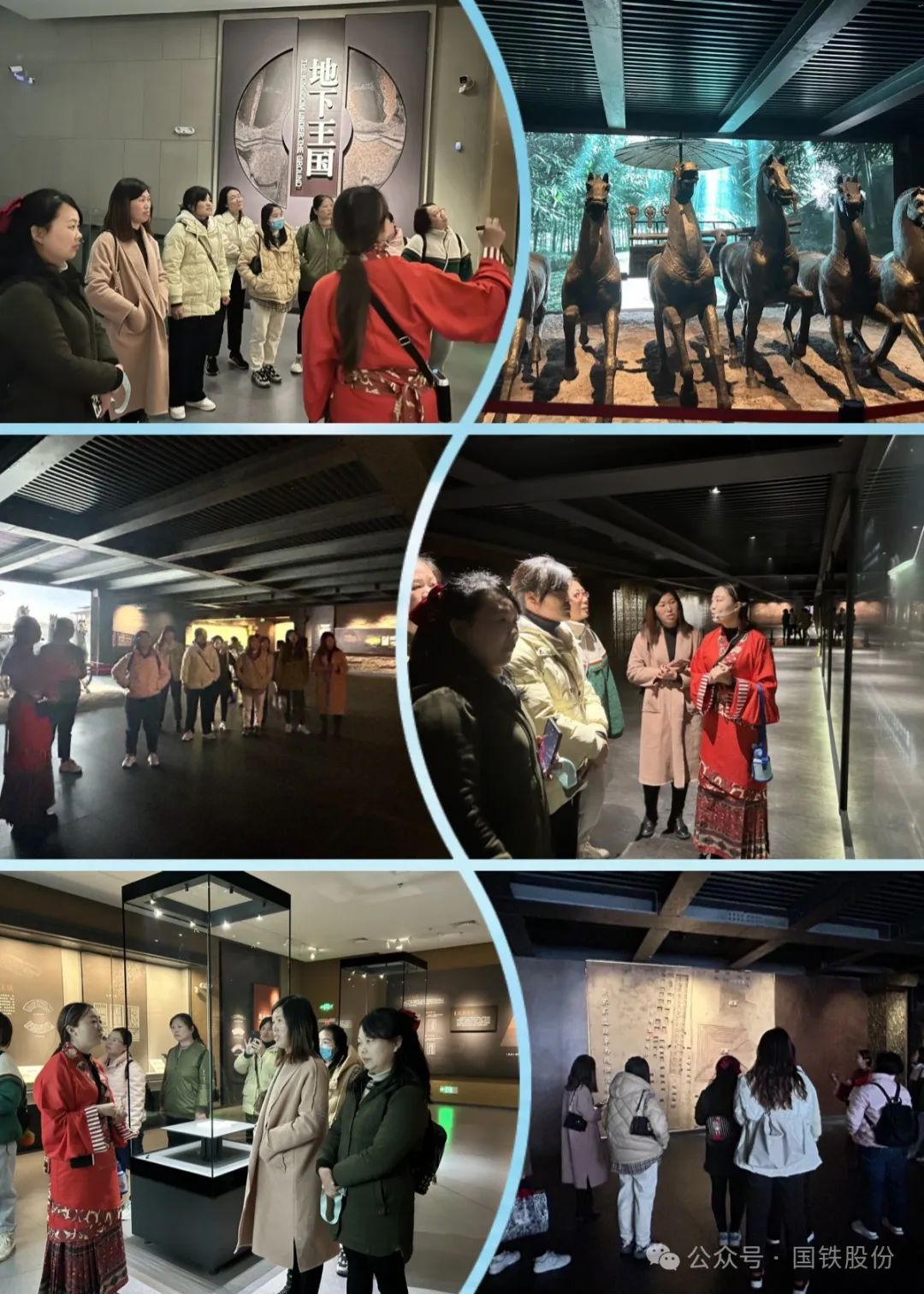在這春和景明的季節(jié)里,女職工們上午來到熊家冢國家考古遺址公園——楚王車馬陣景區(qū),踏著自然味道的清新綠,呼吸著高純度凈化的空氣,在景區(qū)講解員熱情地帶領(lǐng)下,瞻仰楚王陵、參觀殉葬墓等核心景點,傾聽楚王車馬陣悠久的人文歷史及文物背后的故事。在全新升級的車馬陣展廳中,兵車蝶鱗中,銅浮雕、仿夯土繪畫、紗幕投影……沉睡的車馬“活”了起來,攜帶兩千年輝煌奔騰而來。