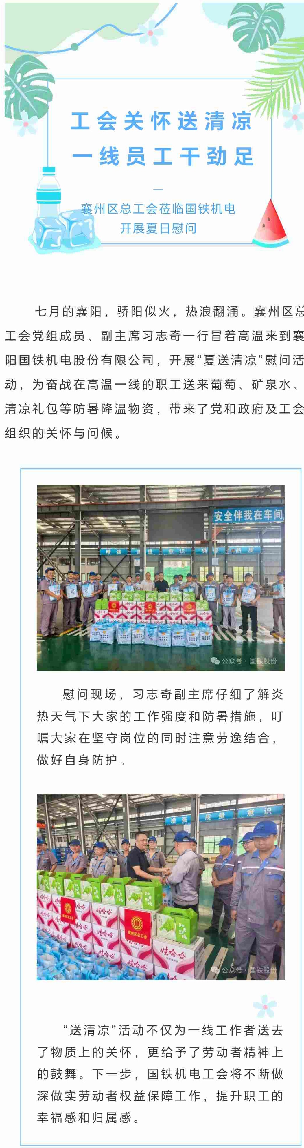 夏日送清涼 關(guān)愛沁人心!襄州區(qū)總工會蒞臨國鐵機電開展夏日慰問